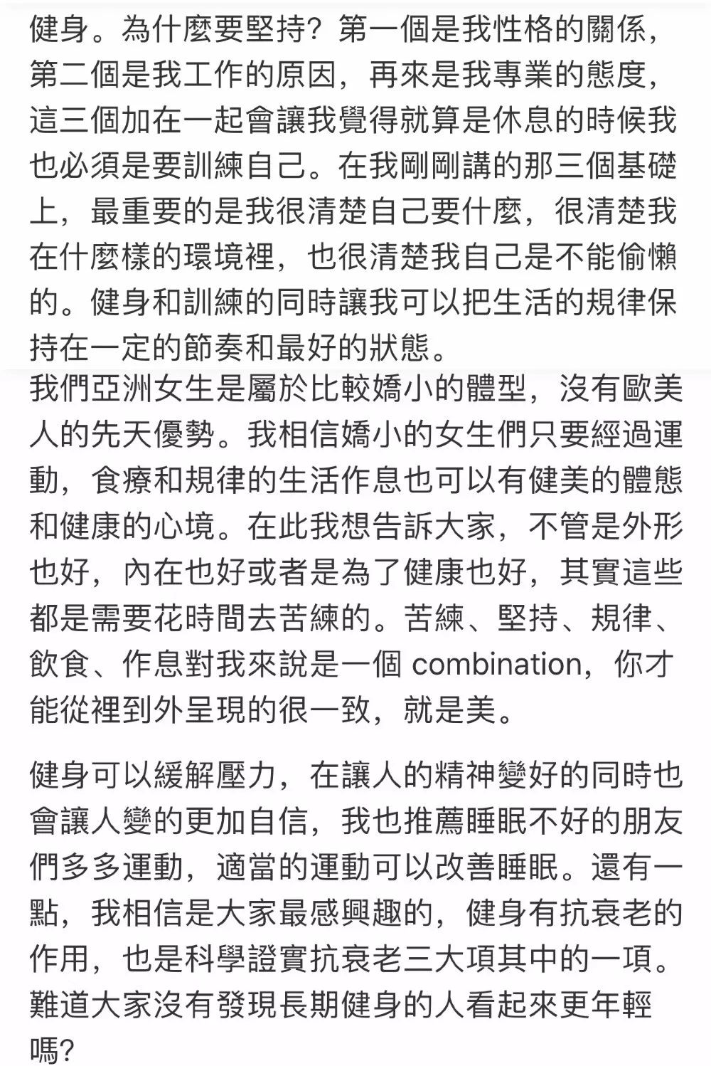 即使工作再忙,也不忘抽出时间锻炼身体!到底为什么要这么拼,这么拼难道不累吗?!看看她本人是怎么说的吧。↓↓↓