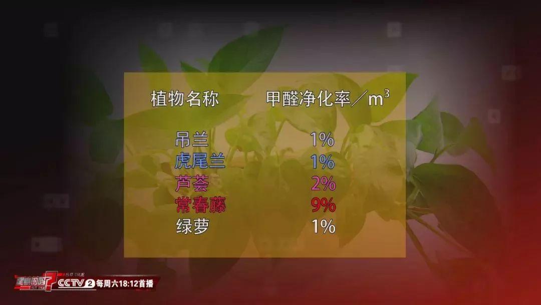 五盆植物中,甲醛净化率最高的竟然是常春藤,一立方米内可以达到9%。