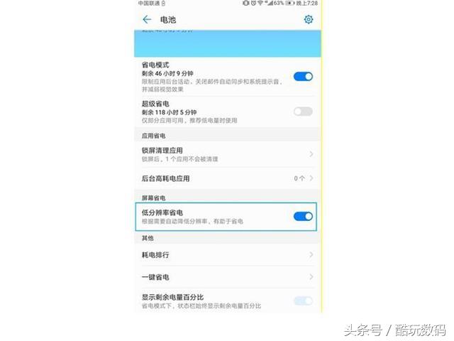 现在手机屏幕大部分都是1080P,2K屏。但是殊不知,手机里最耗电的硬件就是屏幕了,现在手机分辨率那么高,其实我们的肉眼识别度并不是很高,如果你想省电的话,就打开“低分辨率省电”开关,这样就能延长你的续航时间了。
