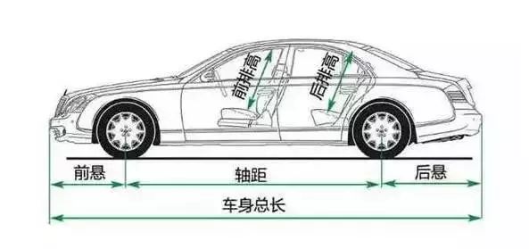 所谓轴距就是前轴中心到后轴中心的距离,前悬是指前轴中心到车前端的水平距离,而后悬是指后轴中心到车后端的水平距离;前悬+轴距+后悬=车长。