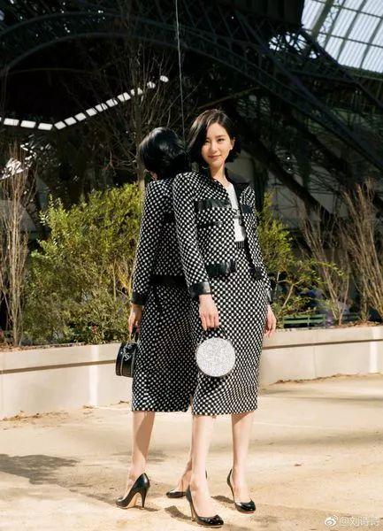 刘诗诗的空气短发和允儿的整体感觉很相似,同样是没有刘海露出饱满的额头,在发尾的部分作出有空气感的弧度,复古风十足。