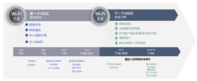 今年开始,最新的IEEE 802.11ax开始商用部署,该协议可缓解密集环境下的WiFi拥堵问题。802.11ax的特性包括8x8 MU-MIMO、8x8探测机制、OFDMA、资源调度、目标唤醒时间,这些专业术语大家听听就好,带来的改变不妨用数据来直观理解。首先是相比WiFi1.0时代拥有超过10倍网络效率提升;而另一个例子是理论上*载下**10Gb的数据,大约只需6秒就能完成,是802.11ac的4倍。小结来说,802.11ax效率更高,能确保更高带宽的利用,继而创造更优秀的体验。