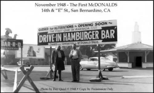 1948年,麦当劳还只是一个位于美国加利福尼亚州小餐厅,它的拥有者也不是雷·克罗克,而是迪克.麦当劳与麦克.麦当劳兄弟。