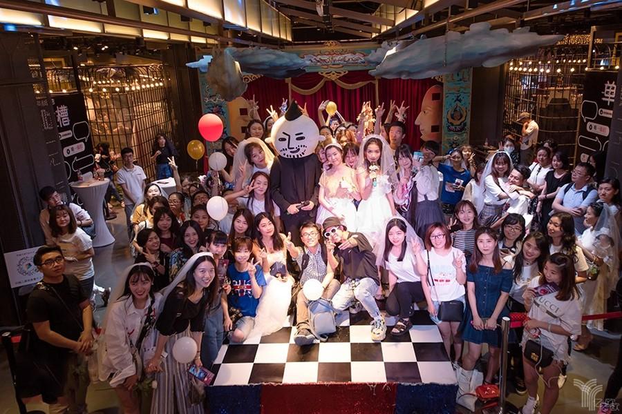 所以,如果要再度实现差异化,所谓的体验需要再度升级。同道大叔的单身婚纱店从创意到形式都充满了有趣与独特,比如与泸州老窖合作的所谓“百调星座预调酒酒”亮相“酒吧区”,花作提供的魔法花茶…….各种沉浸式现场体验,惊喜彩蛋占领眼球。