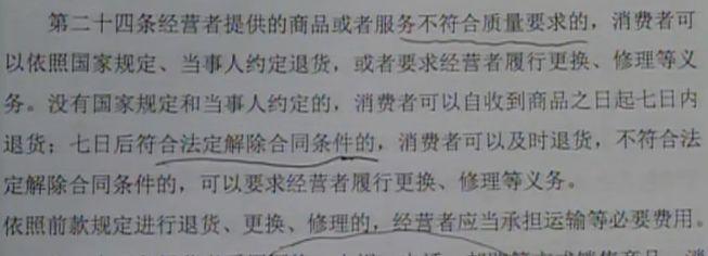 记者从相关部门了解到,按照《中华人民共和国消费者权益保护法》第二十四条规定,经营者提供的商品或服务不符合质量要求的,消费者可以依照国家规定、当事人约定退货,或者要求经营者履行更换、修理等义务。