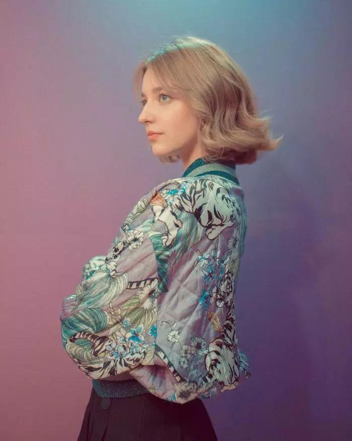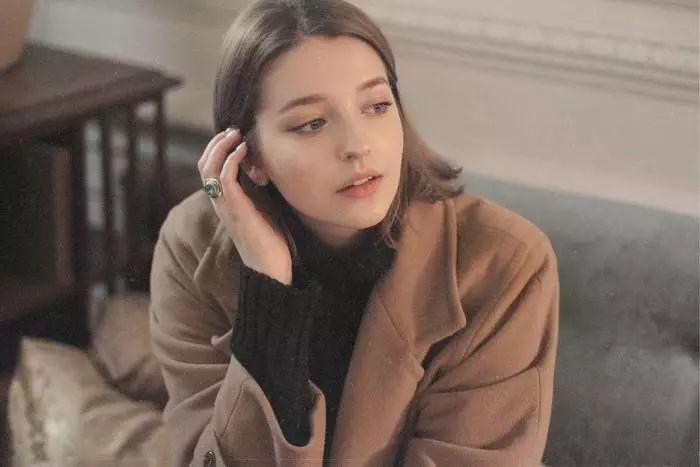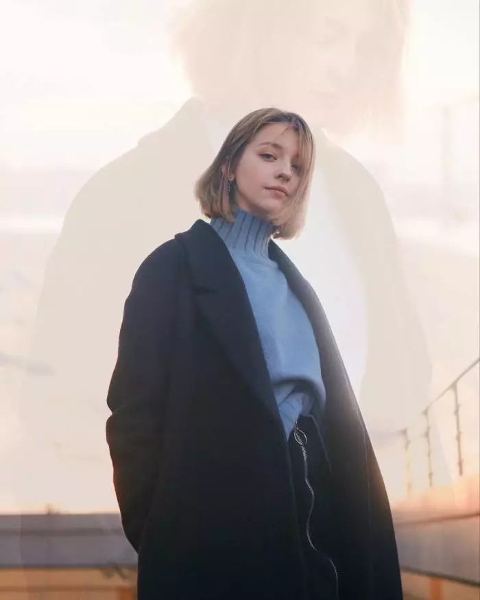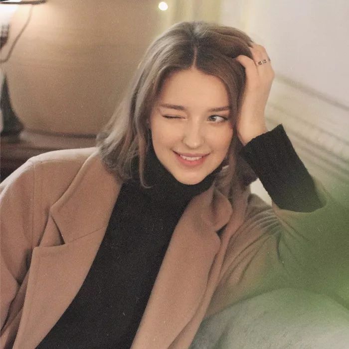 发尾微波短发的卷发弧度只有一点点,所以看起来自然感是很强的,参照下图AngelinaDanilova的穿搭,搭配上一个适合发色的贝雷帽也是美的。