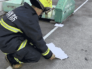 消防员在点燃的蚊香上面覆盖了几层餐巾纸。