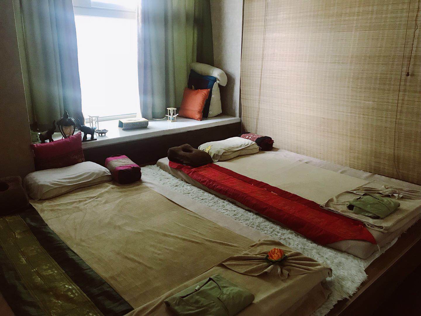 绿色的帘子,可以隔出单人间也可以变成双人间,灵活多变,适合朋友和情侣之间。泰国阿姨的手法还是到位,从脚到背的顺序,再回到脚,不断地推压,一点点拨开。听着声音很小的舒缓轻乐曲,整个人很容易就放松了。