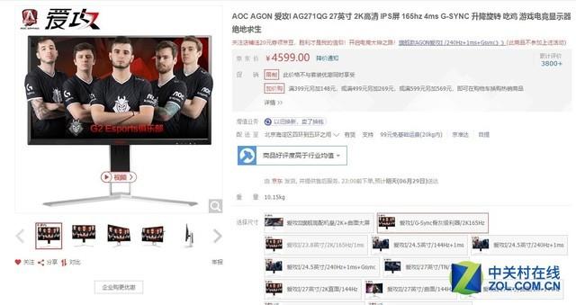 AOC AG271QG是一台高端游戏电竞显示器。该款显示器不仅拥有4ms的灰阶响应时间和165Hz的屏幕刷新频率,还内嵌了G-Sync垂直同步芯片,在抗撕裂、抗拖影方面做得非常出色,专业的游戏发烧友不要错过这款显示器了。