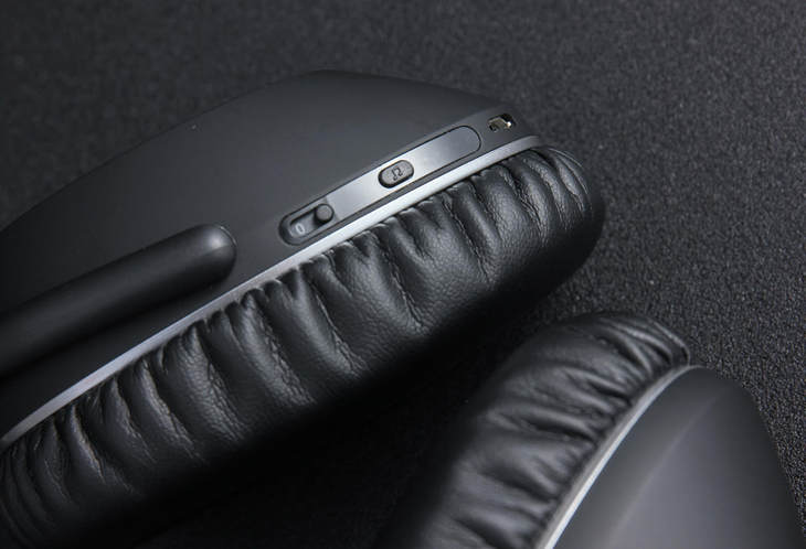 此外,所有接口均设计也在耳机右侧。其中包括顶部蓝牙开关功能,底部耳机感应、降噪开关、乐曲风格、点拨灯、Micro USB 充电口、2.5mm 音频线。