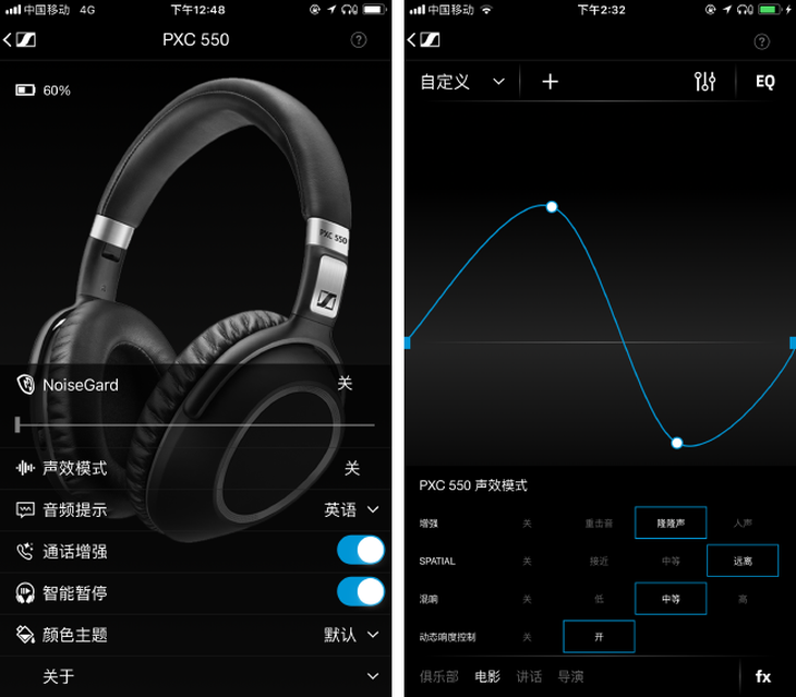 通过 APP 你可以直接对 PXC550 的所有功能的开启进行控制,其中通话增强和智能暂停这两个实用的功能智能通过 APP 进行开启与关闭。智能暂停能够使乐曲在离开耳朵后立即暂停,当你带上耳机后乐曲便会在上次中断处继续*放播**。在实际体验 PXC500 的语音通话清晰度体验不错,而通话增强则是增加语音对话时音量的大小,特别是在乘坐列车的时候这个功能显得尤为重要。