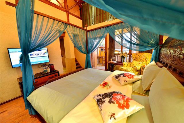 每间客房都在客老板的精心装潢之下,充满了丽江当地特色。古朴的院门、精致的雕花木质小楼、曲径通幽的四合院,纳西文化在这里体现得淋漓尽致。