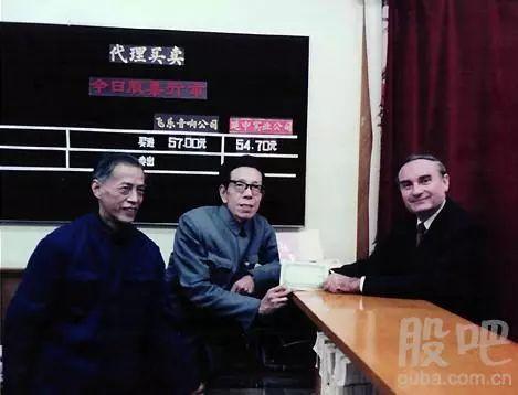 1986年11月16日,纽约证券交易所主席约翰凡尔霖手持飞乐音响公司股票到静安证券业务部办理过户手续