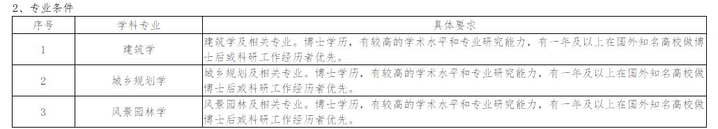 主要引进国内外建筑学、城乡规划学、风景园林学科重点高校毕业博士及以上高级人才,具有国外领会背景(一年以上,具有国外博士学位)者优先。具有突出学术科研成果的人才可以不受上述条件限制。