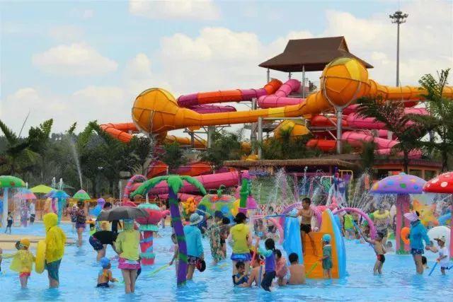 乐园占地面积15万平方米,配置国际顶级水设备,拥有全国占比最大的“儿童游乐区”、全球最大直径的“超级大喇叭”、首个反转水环滑道“大水环”、全国首台娱水漩涡体验项目“霹雳旋风球”、大型亲子互动水寨“巨型水寨”、水上竞速之王滑道“彩虹滑道”等众多亲水游乐项目。布局有各色餐厅,让游客在尽情游玩的同时,享受港式烧味、西式快餐、本地风味等套餐及软食饮品等系列美食,更有星光熠熠夏浪乐曲节、异域风情歌舞、互动主题游戏等精彩呈现,给您带来前所未有的超凡感官体验。