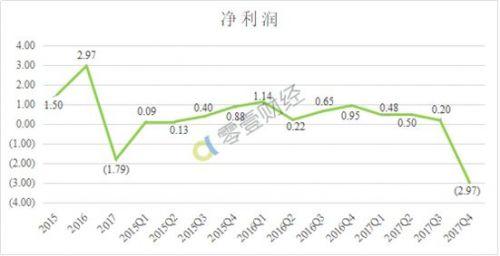 新力金融在2015年、2016年、2017年分别实现净利润1.50亿元、2.97亿元、-1.79亿元,首度出现亏损。从季度数据可以看出,新力金融在2016年第一季度净利润为1.14亿元,为季度最高。2017年第四季度净利润为-2.97亿元,为季度最低也是首次为负,是因为新力金融财富减值3.35亿元。