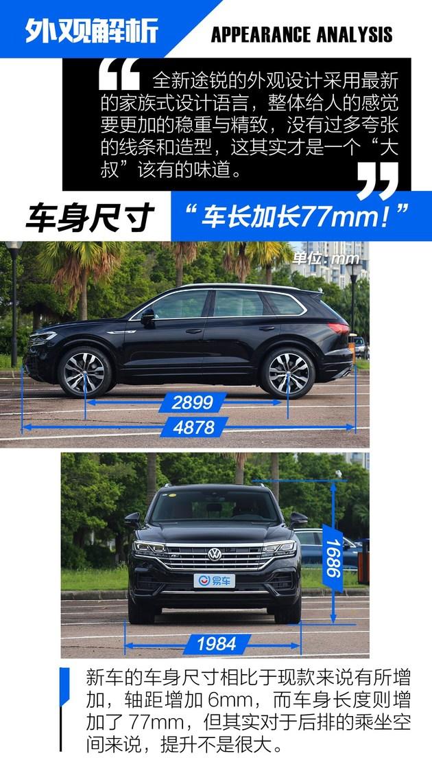 说完动力,我们再来说说外观,看看“大叔”会有着怎样迷人的魅力。全新途锐的外观延续了来自T-Prime概念车的最新家族设计风格,整体车身线条的运用要更加的干净利落,给人一种更加“精神”的感觉。