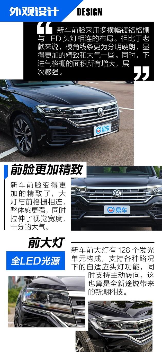 外观小结:全新途锐的外观还是保持着一个“大叔”该有的感觉,但相比于之前它要更加的精致,同时线条也更为硬朗。同时,新车的外观配置上也是十分的丰富,全景天窗、无钥匙进入以及较为特别的夜视功能。虽说全新途锐在外观上保持着一贯稳重大气的同时,还有着很多的配置。